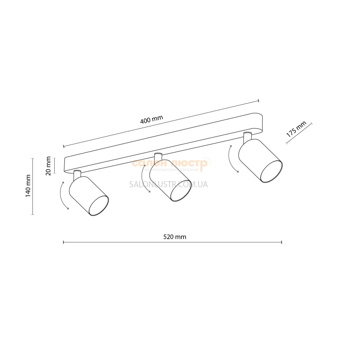 Висота: 14 см; ширина: 52 см; лампа: 3 х GU10 х 10 Вт LED.