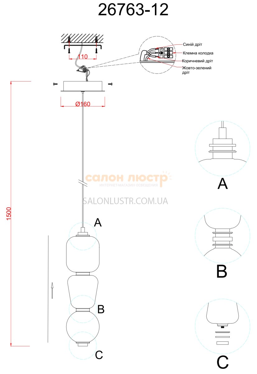 Висота: 50-150 см; діаметр: 16 см; лампи: LED х 12 Вт(4000K).