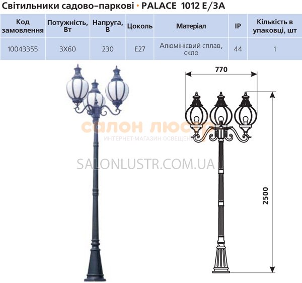Світильник садово-парковий Delux Palace 1012 E/3A 1012 E/3A