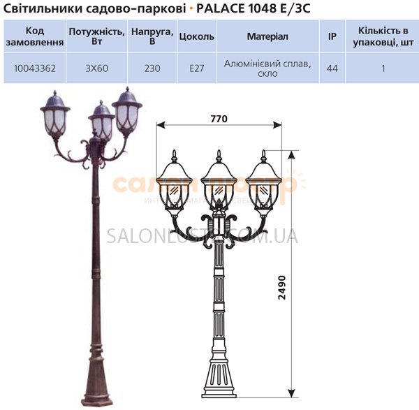 У світильнику садово-парковому Delux Palace 1048 E/3C для зовнішнього висвітлення можливо використовувати: лампу розжарювання, енергозберігаючу лампу, LED лампу.