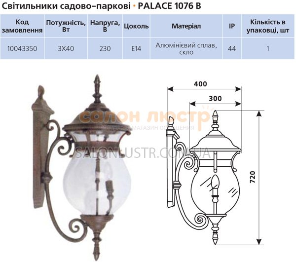 Світильник садово-парковий серії Palace виробництва компанії DELUX можливо використовувати для зовнішнього висвітлення присадибних ділянок, ландшафтних парків, декоративного підсвічування фасадів будинків, алей і газонів. Вуличні світильники Delux виготовлені з атмосферостійких матеріалів, мають широкий вибір моделей і дизайну для зовнішнього висвітлення.