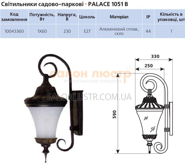 У світильнику садово-парковому Delux Palace 1051 B для зовнішнього висвітлення можливо використовувати: лампу розжарювання, енергозберігаючу лампу, LED лампу.