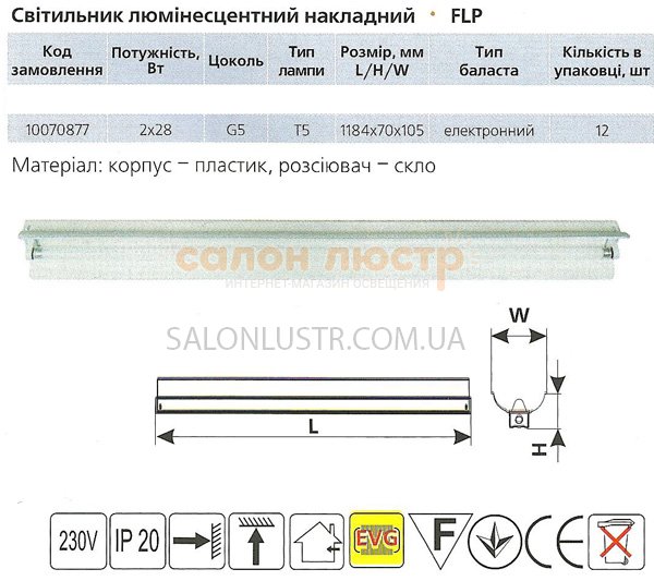 Світильник люмінесцентний накладної FLP 2x28W FLP 2x28W
