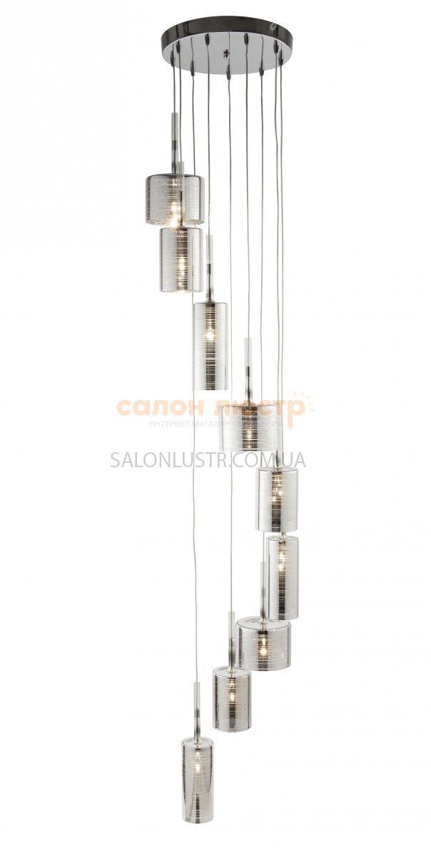 Люстра підвіс виробництва компанії SEARCHLIGHT (Великобританія); Матеріал: метал, скло; Колір підстави: хром; Колір плафона: хром+прозорі лінії; Висота: 185 см; ширина: 40 см; лампа: 9 х G4 х 7 Вт.