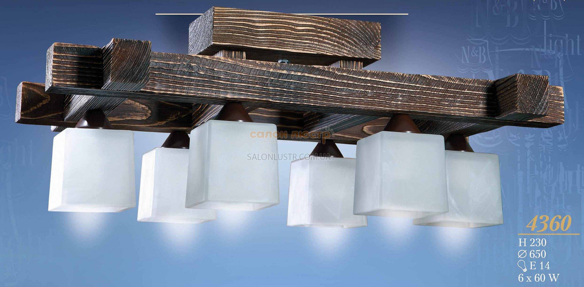 Висота: 23 см; діаметр: 60 см; лампи: 6 х Е-14 х 60 Вт. - УКРАЇНА