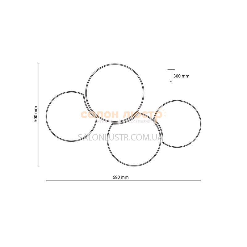 Висота: 29 см; діаметр: 48х74 см; лампи: 4 х Е-27 х 15 Вт LED.