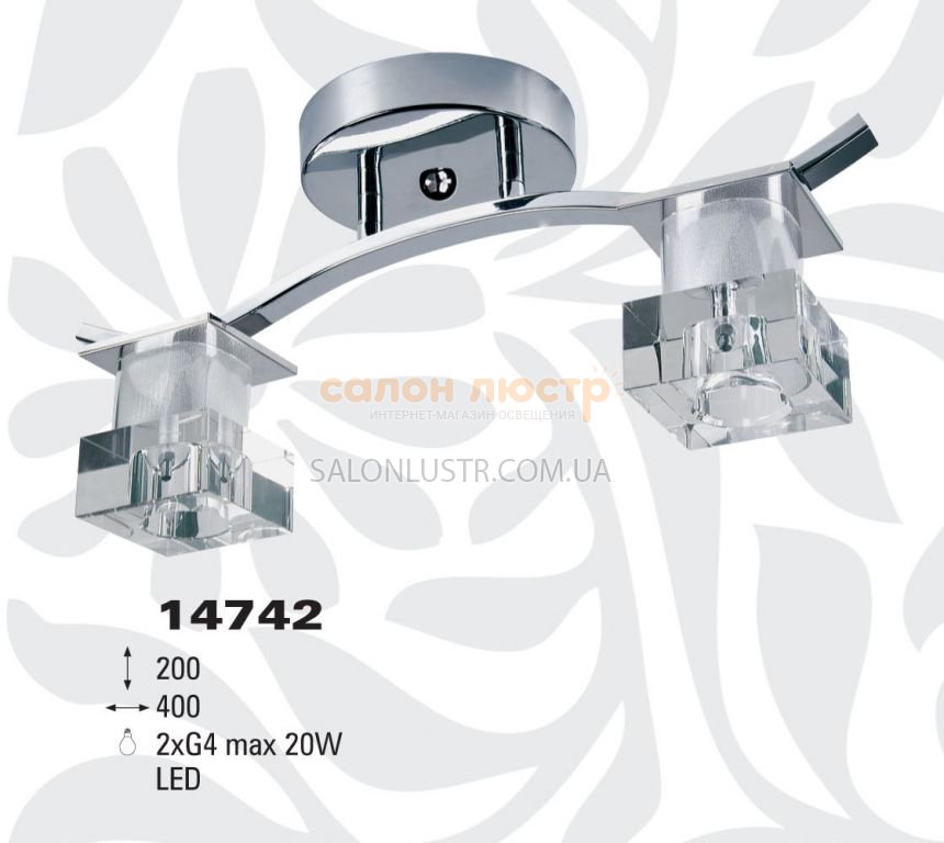 Висота: 20 см; ширина: 40 см; лампи: 2 х G4 max 20W .