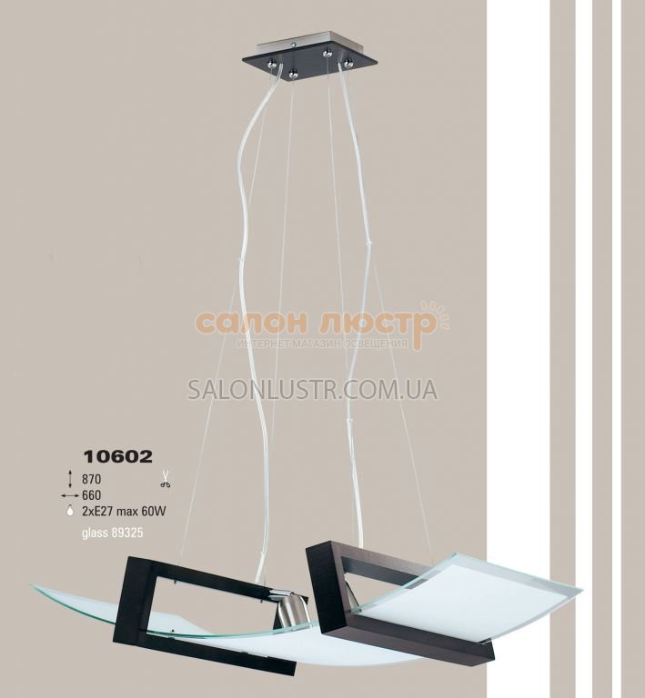 Висота: 50-87 см; ширина: 66 см; лампи: 2 х Е-27 х 60 Вт;