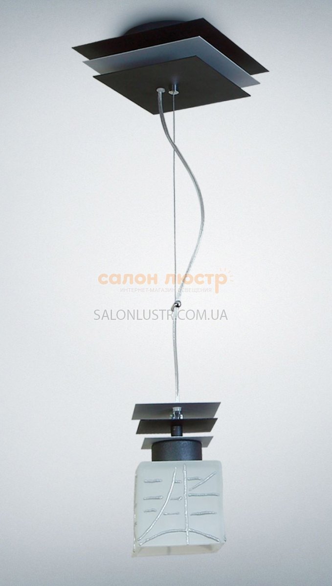 Люстра підвіс серії Піастра виробництва компанії "N&B Light"(Україна); Матеріал: метал, скло; Колір підстави: Чорна структура - сіра структура; Плафон: Квадро середнє декор; Колір декору: Сірий; Висота: 30-57 см; ширина: 19 см; лампи: 1 х Е-27 х 60 Вт.