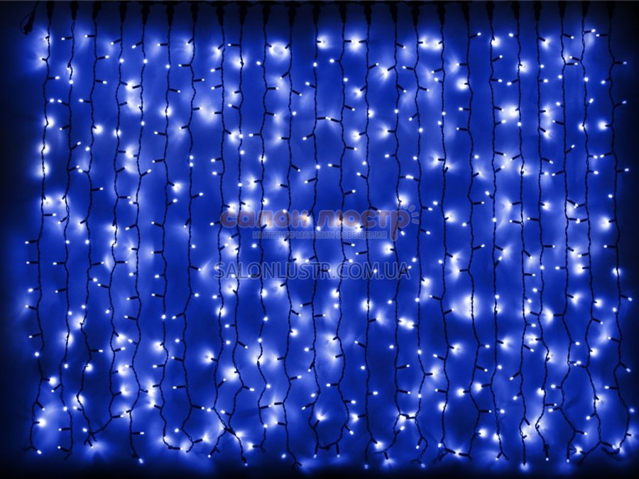 - DELUXШирина: 2 метра; висота: 7 метрів; Колір світлодіодів: синій; Колір кабелю: білий; Кількість світлодіодів: 1520 шт.