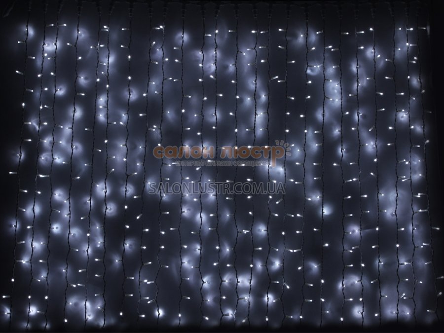- DELUXШирина: 2 метра; висота: 1.5 метра; колір світлодіодів: білий; колір кабелю: чорний; кількість світлодіодів: 456 шт; можливість з'єднання до 8 гірлянд від одного джерела живлення.