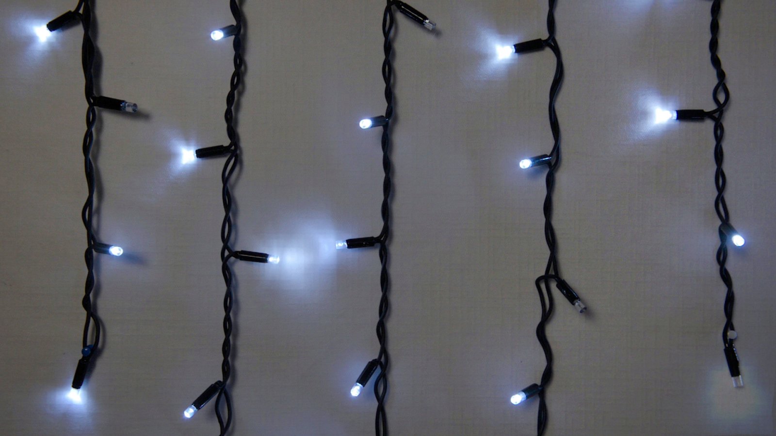 - DELUXДовжина: 2 метра; висота: 1 метр; колір світлодіодів: різнобарвний; колір кабелю: білий; кількість світлодіодів: 108 шт, можливість з'єднання до 15 гірлянд від одного джерела живлення.