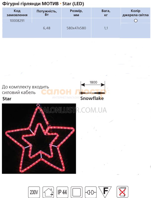 Гірлянда світлодіодна Motif Star виробництва компанії Delux призначена для зовнішнього святкового оформлення й декоративного підсвічування новорічних ялин, дерев, офісів, будинків, вітрин магазинів, готелів, ресторанів, автозаправок і інших об'єктів до яких потрібно привернути увагу або просто порадувати оригінальною ілюмінацією в переддень новорічних свят.