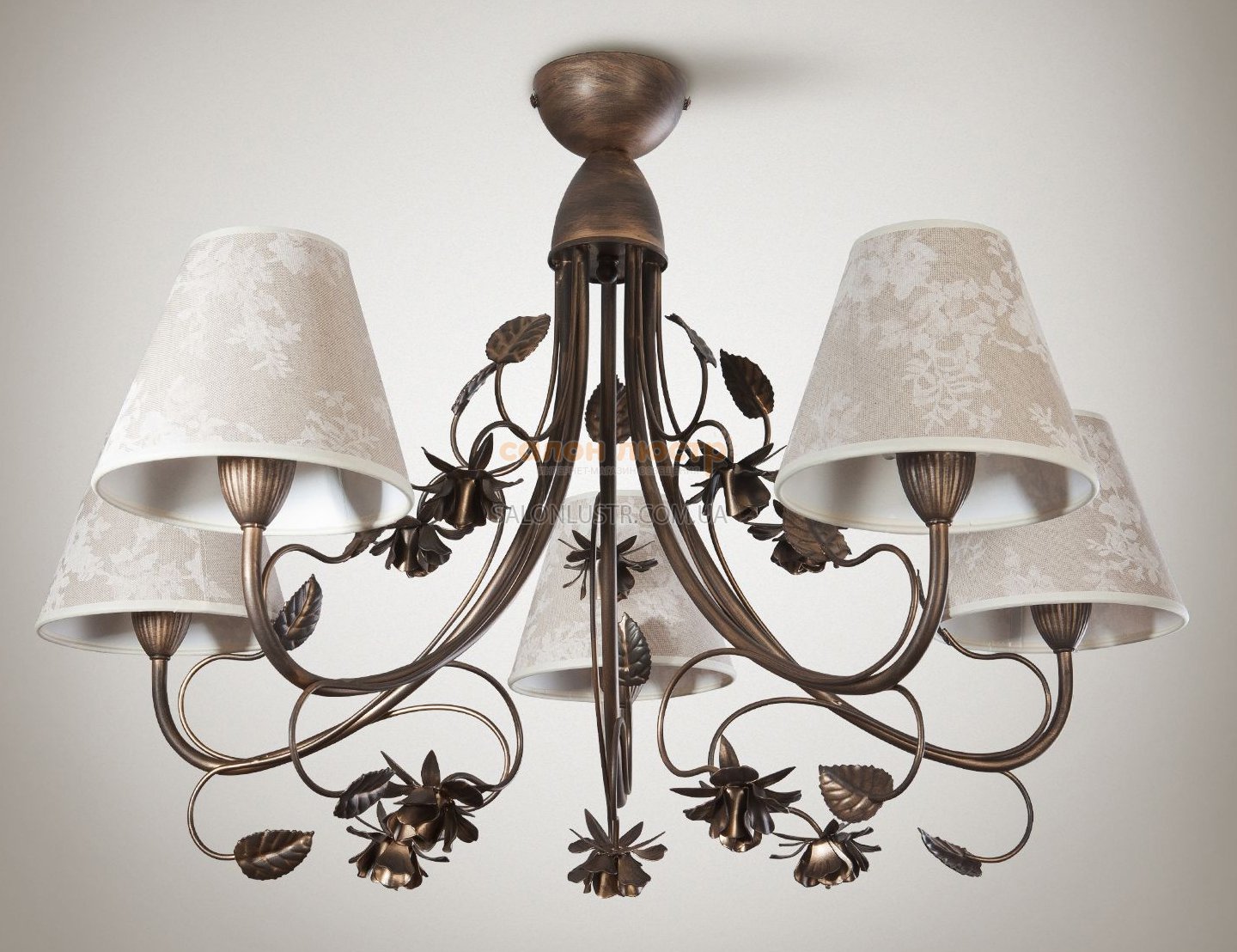 Висота: 42,5 см; діаметр: 75 см; лампи: 5 х Е-14 х 60 Вт. - УКРАЇНА