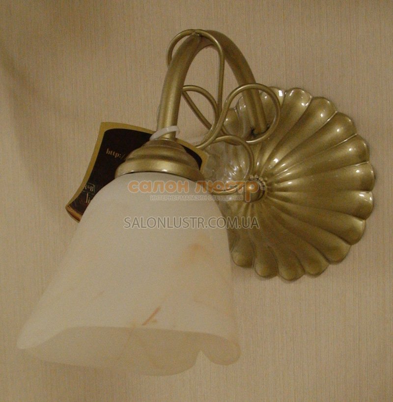 Світильник настінний(бра) виробництва компанії Україна; Матеріал: фарбований метав, скляний плафон; Колір підстави: Золото; Плафон: Калла мала; Колір плафона: Бежевий; Висота: 16 см; ширина: 12 см; лампи: 1 х Е-14 х 60 Вт.