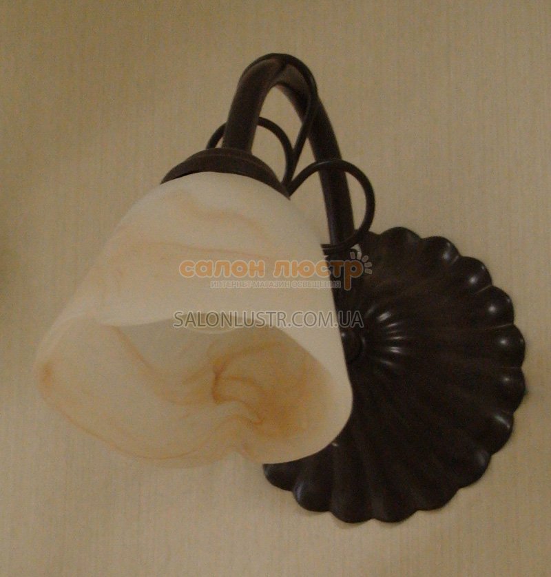 Світильник настінний(бра) виробництва компанії Україна; Матеріал: фарбований метав, скляний плафон; Колір підстави: Коричневий матовий; Плафон: Калла мала; Колір плафона: Бежевий; Висота: 16 см; ширина: 12 см; лампи: 1 х Е-14 х 60 Вт.