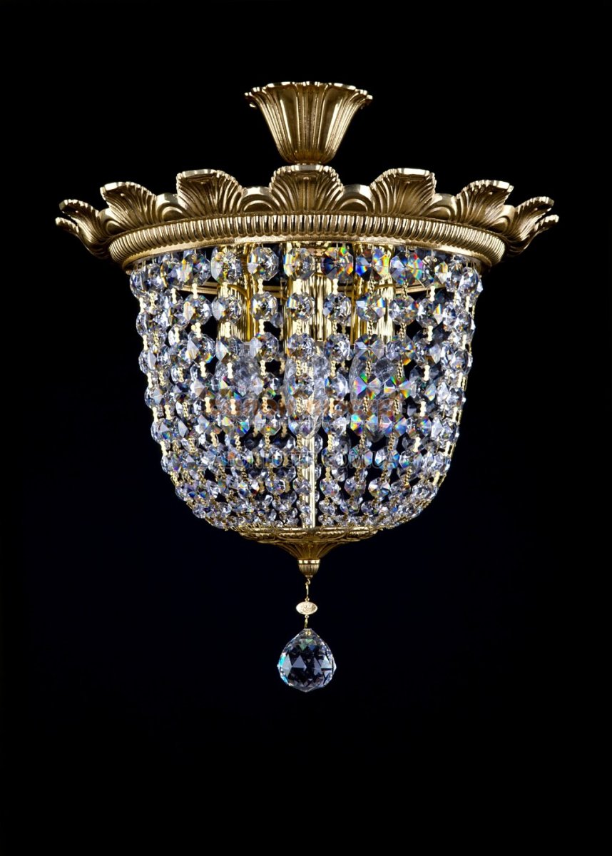 Люстра стельова кришталева виробництва чеської компанії Art Glass; Матеріал: метал, кришталь; Колір (підстави): Gold (золото); Тип (кришталю): Crystal Exclusive(вищої якості); Висота: 35,5 см; діаметр: 36,5 см; лампи: 4 х Е-14 х 40 Вт.