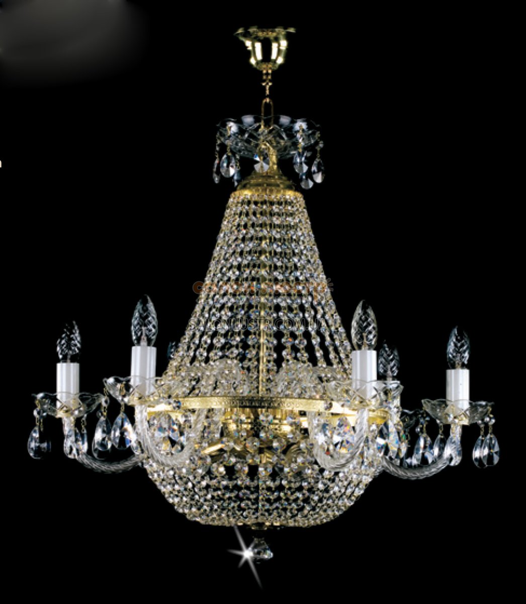 Люстра Dolores виробництва компанії ARTGLASS; Матеріал: метал під золото або хром, кришталь (classic, crystal exclusive); Висота: 62 см; діаметр: 65 см; лампи: 9 х Е-14 х 40 Вт;
