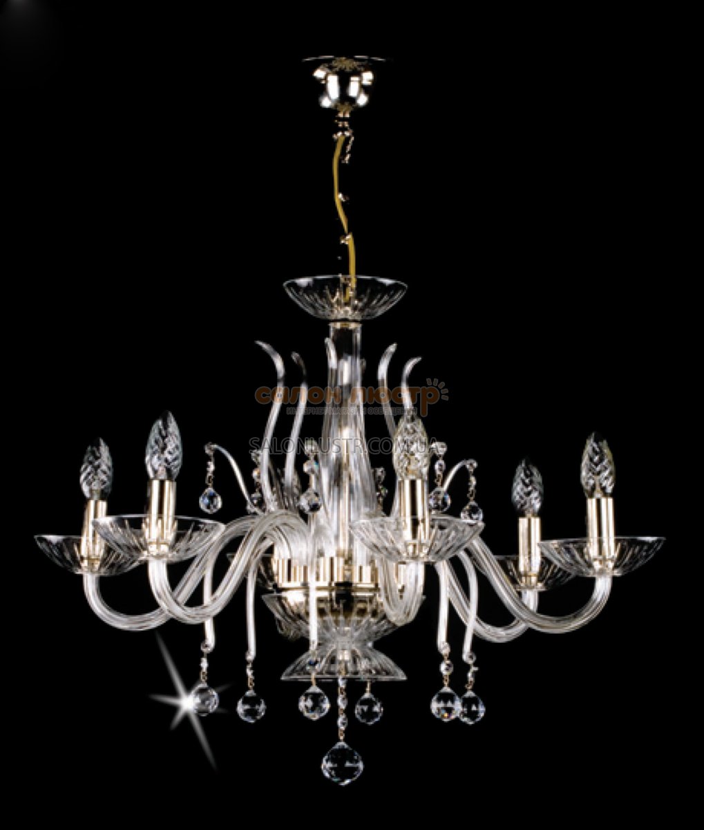 Люстра Elektra VI виробництва компанії ARTGLASS; Матеріал: метал під золото або хром, кришталь (crystal exclusive, spectra); Висота: 49 см; діаметр: 65 см; лампи: 6 х Е-14 х 40 Вт;