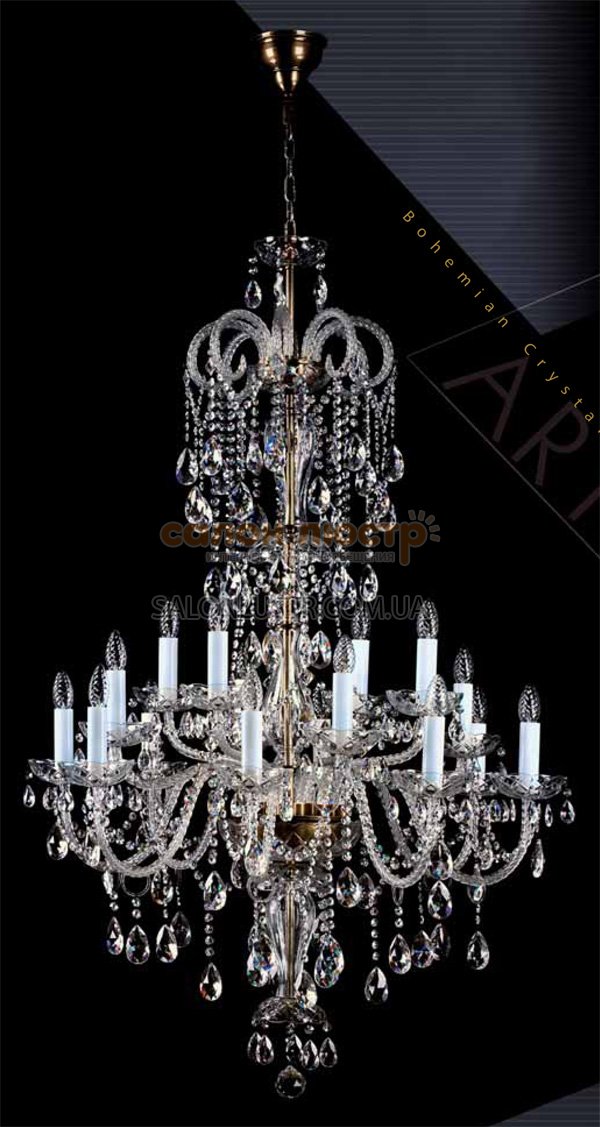 Люстра кришталева Theodora виробництва компанії ARTGLASS; Матеріал: метал золото або хром, кришталь (classic, crystal exclusive, spectra swarovski); Висота: 150 см; діаметр: 91 см; лампи: 16 х Е-14 х 40 Вт.