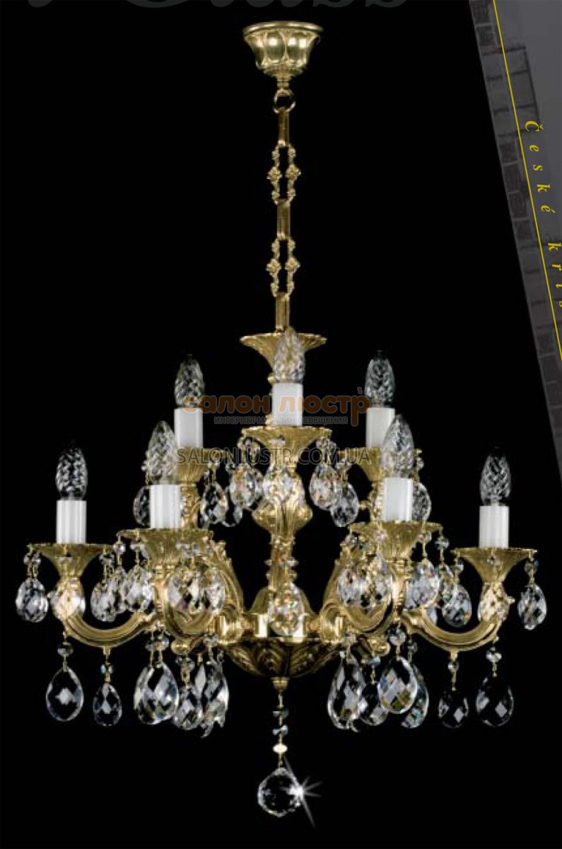 Люстра Genadia IX виробництва компанії ARTGLASS (Чехія) Матеріал: метал під золото або хром, кришталь (classic, crystal exclusive, spectra) Висота: 53 см; діаметр: 57 см; лампи: 9 х Е-14 х 40 Вт