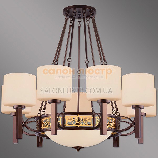 Висота: 56 см; діаметр: 69 см; лампи: 9 х Е14 х 60 Вт + 1 х Е27 х 60 Вт.