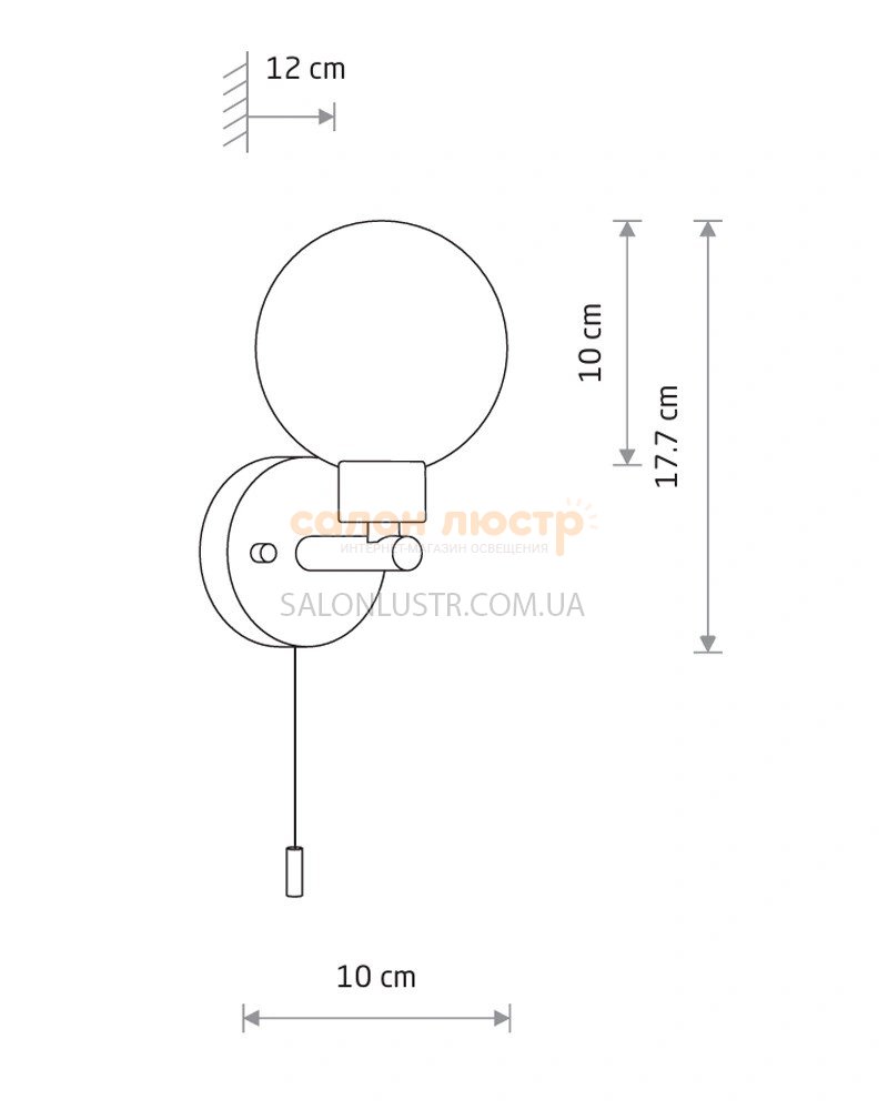 Висота: 17 см; ширина: 10 см; лампи: 1 х G9 х 25 Вт.