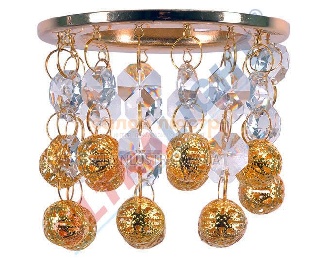 Крапковий світильник не поворотний виробництва компанії ULTRALIGHT. Матеріал: метал, колір: золото; Колір скла: прозорий; Монтажний отвір: 5.8 см; Висота: 8см; діаметр: 8 см; лампи: 1 х MR16 G5,3 12V/220V 50W. Для галогенних лампочок 12В потрібний трансформатор або кілька трансформаторів, потужністю не менше сумарної потужності всіх лампочок. Також можливо використовувати енергозберігаючі лампочки EMR 16 11Вт, приблизно рівної потужності 60Вт лампи розжарювання або світлодіодні лампи.