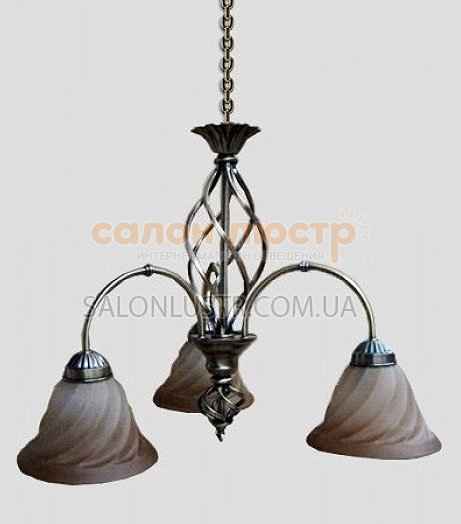 Люстра класична виробництва компанії "BLITZ" (Німеччина); Матеріал: метал, скло; Колір підстави: бронза; Колір плафона: коричневий+білий Висота: 55-100 см; діаметр: 60 см; лампи: 3 х Е-27 х 60 Вт.