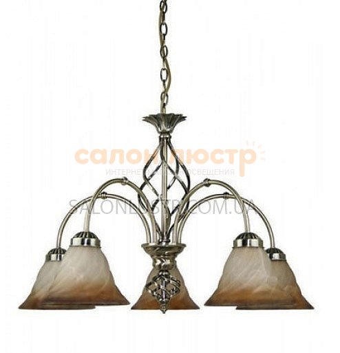 Люстра класична виробництва компанії "BLITZ" (Німеччина); Матеріал: метал, скло; Колір підстави: бронза; Колір плафона: коричневий+білий Висота: 55-100 см; діаметр: 60 см; лампи: 5 х Е-27 х 60 Вт.