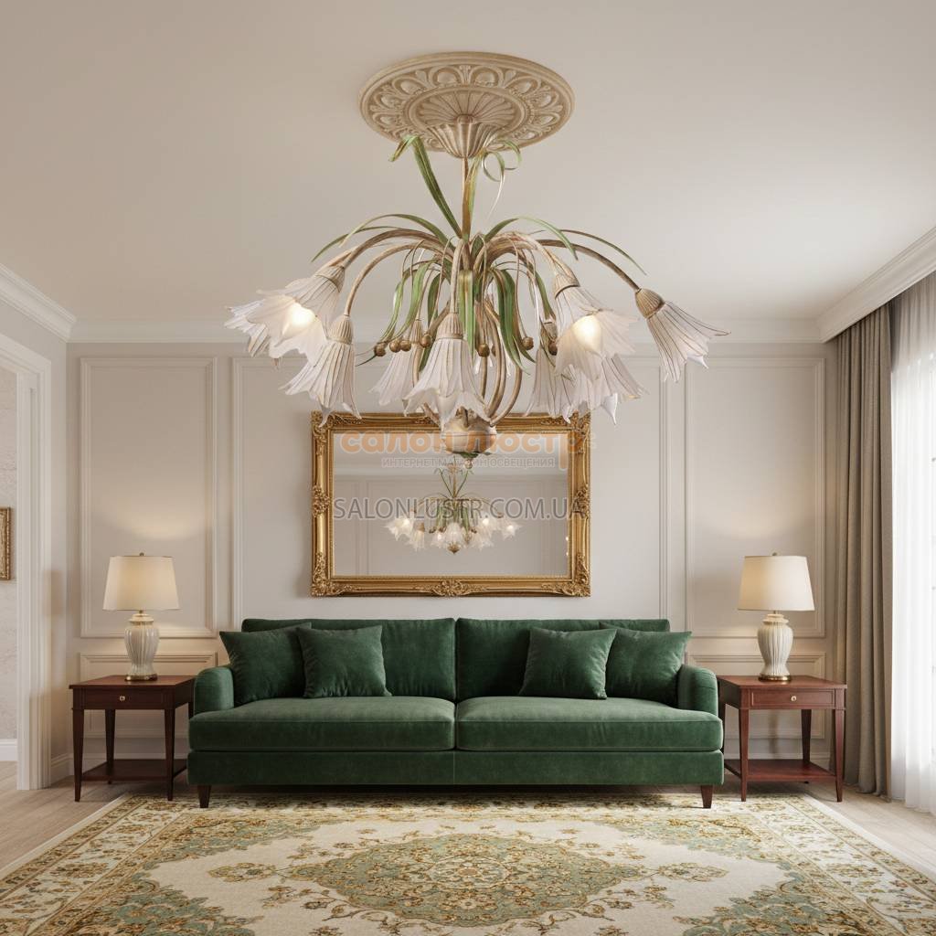 Висота: 68 см; діаметр: 84 см; лампи: 8 х Е-14 х 60 Вт. - УКРАЇНА