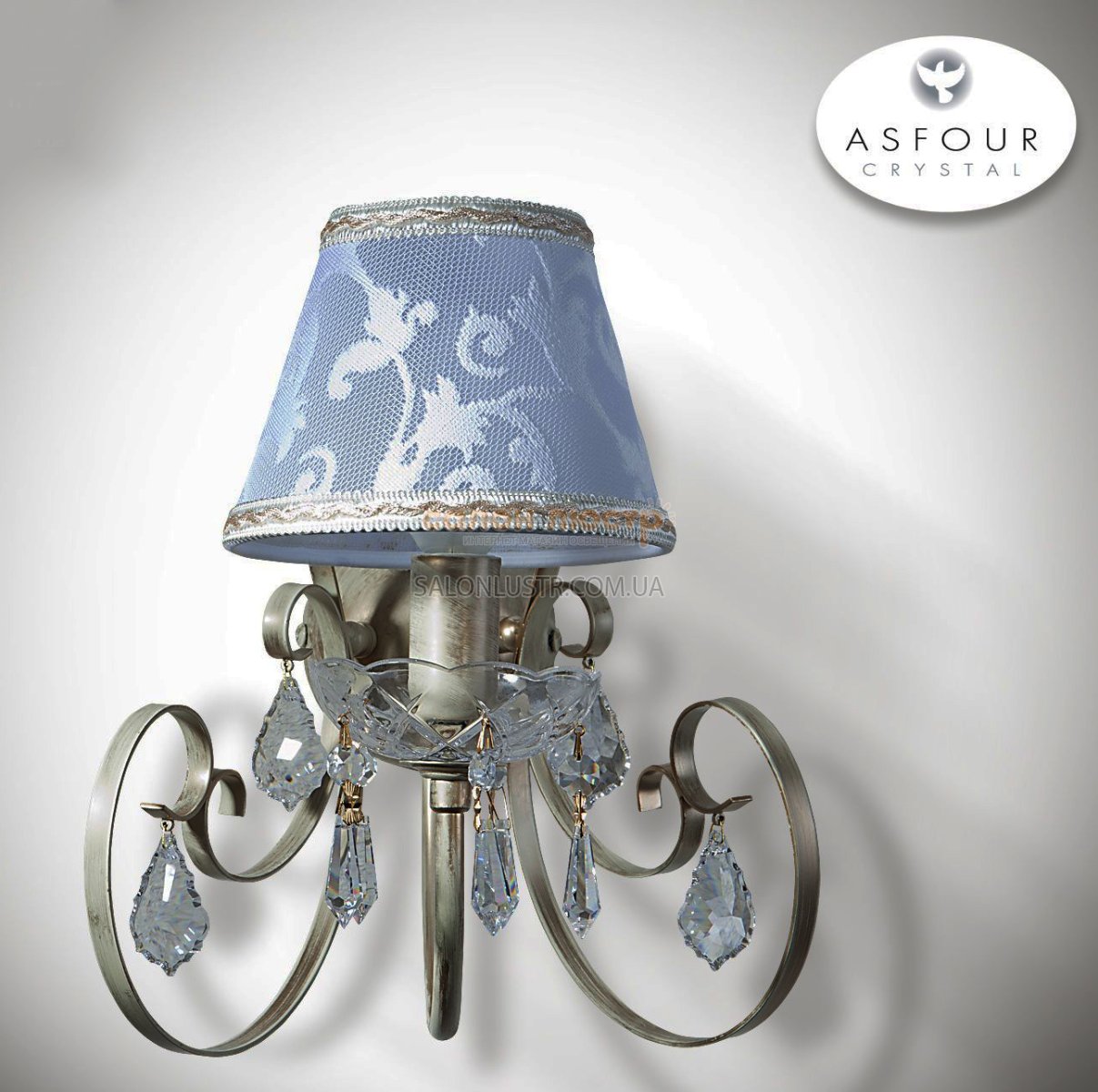 Світильник настінний (бра) із кришталем виробництва Україна; Матеріал: фарбований метал, полімер, текстиль, кришталь"ASFOUR"; Колір основи: Крем - золото - патина; Номер абажура: 67N; Колір тканини абажура: 0452; Висота: 32 см; ширина: 25 см; лампи: 1 х Е-14 х 60 Вт.