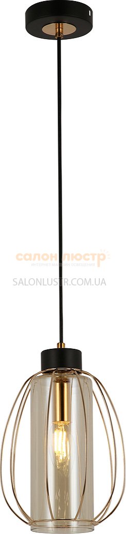 Люстра підвіс виробництва компанії "BLITZ" (Німеччина); Матеріал: метал, скло; Колір підстави: чорний+золото; Колір плафона: бурштиновий; Висота: 50-120 см; діаметр: 18 см; лампи: 1 х Е-14 х 60 Вт.