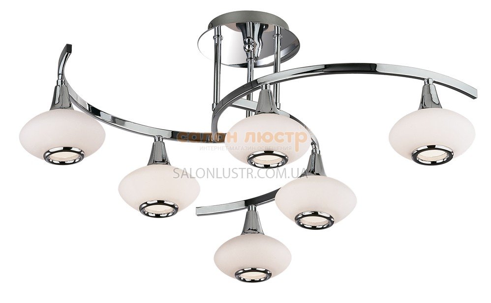 Люстра сучасна виробництва компанії "BLITZ" (Німеччина); Матеріал: метал / стекло; Колір: хром / білий; Висота: 28 см; ширина: 71,5 см; лампи: 6 х G9 х 40 Вт; Лампочки в комплекті.