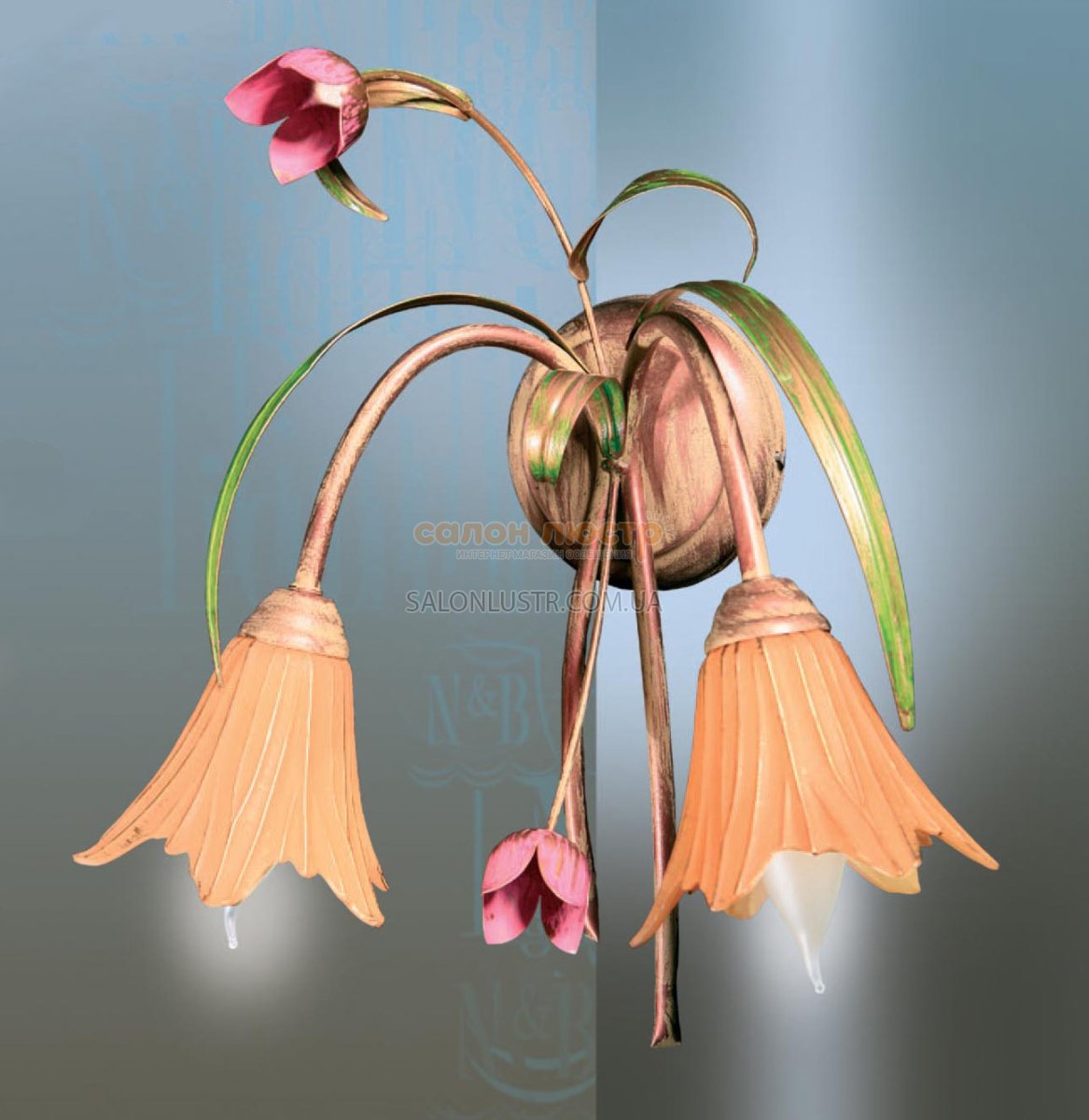 Світильник настінний (бра) виконаний у стилі флористика виробництва Україна; Матеріал: метал, скло; Колір основи: Очерет; Плафон: Еволюзіон Д15; Колір плафонів: Бежевий; Висота: 35 см; ширина: 40 см; лампи: 2 х Е-14 х 60 Вт.