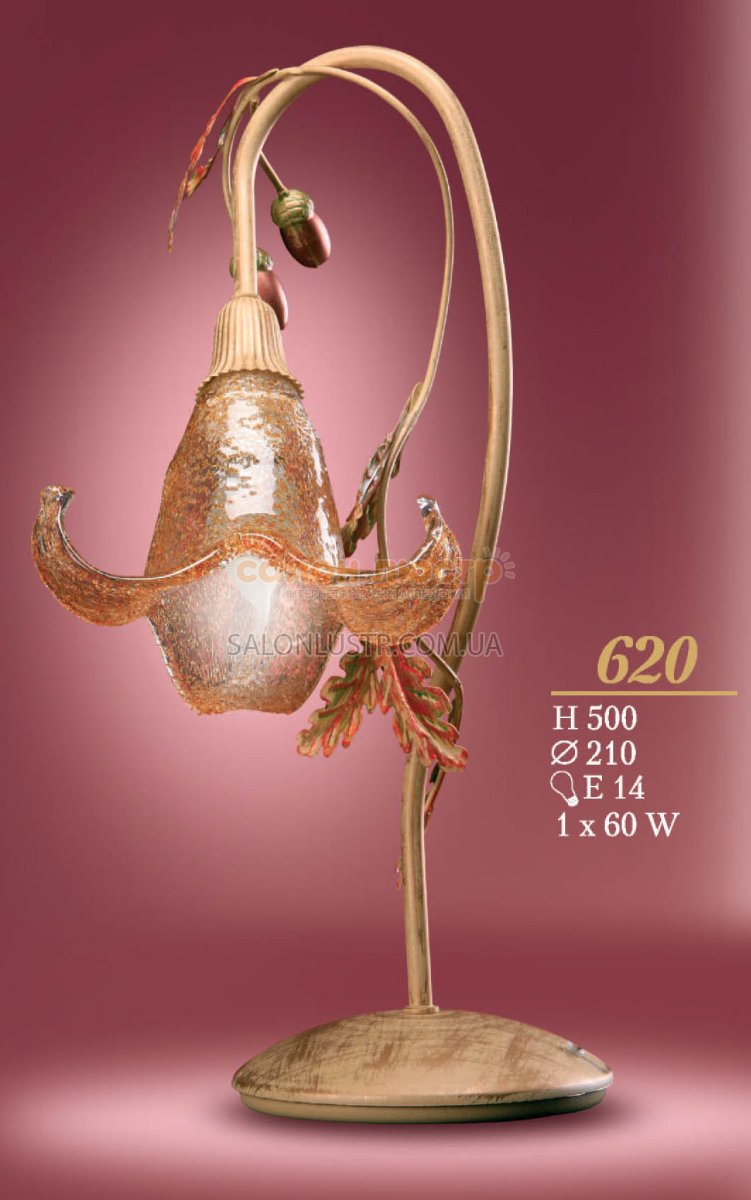 Настільна лампа серії Жолудь виробництва компанії "N&B Light"; Матеріал: фарбований метал, скло; Колір (підстави): Осінь; Колір (плафона): Лілія бежевий; Висота: 50 см; діаметр: 21 см; лампи: 1 х Е-14 х 60 Вт.
