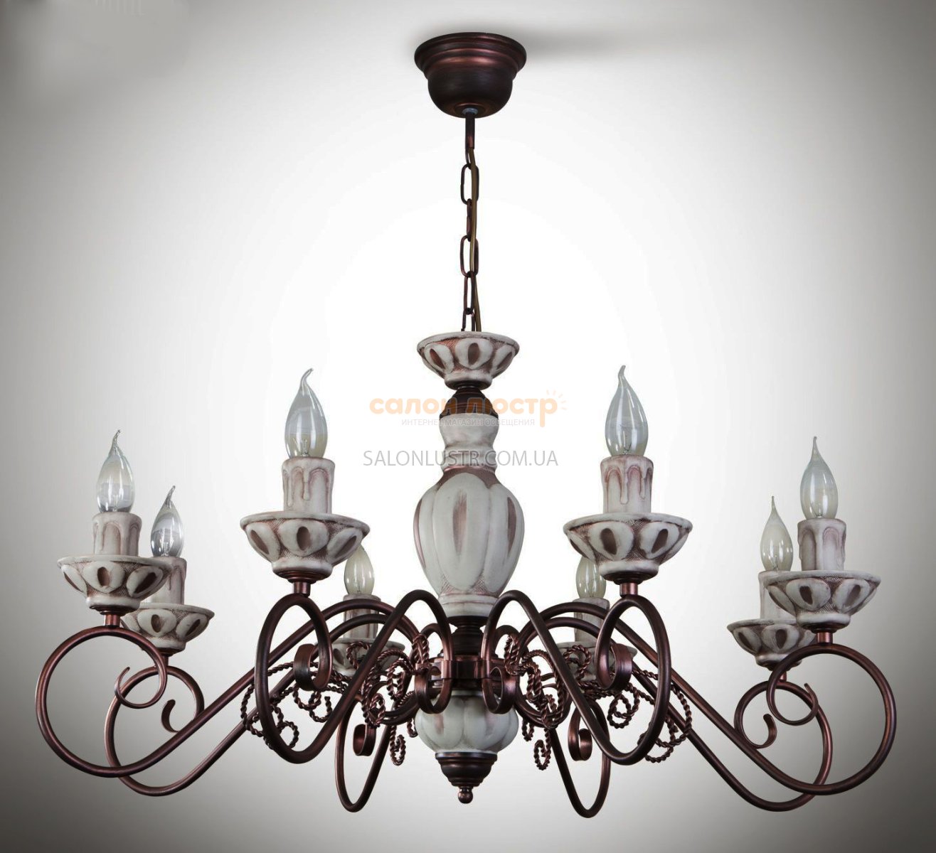 Люстра класична виробництва Україна; Матеріал: метал, кераміка; Колір основи: Сірокоричневий - мідь - патина; Висота: 52-72 см; ширина: 77 см; лампи: 8 х Е-14 х 60 Вт.