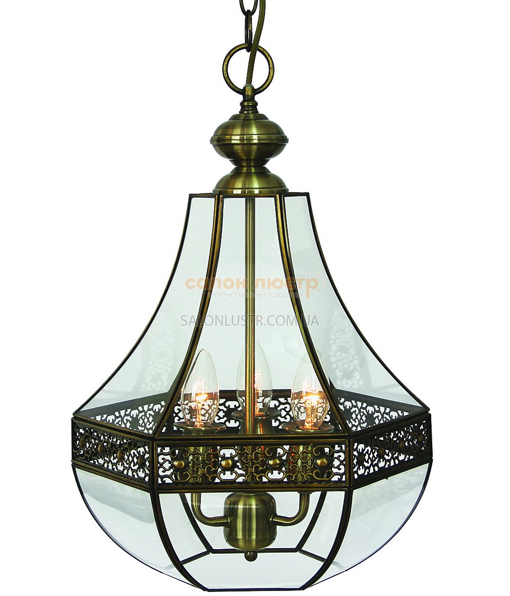 Люстра-Підвіс виробництва компанії WUNDERLICHT (Німеччина); Матеріали: метал, скло; Колір: бронза, прозоре; Висота: 50-100 см; Ширина: 33 см; Тип патрона: E14; Кількість ламп: 3; Потужність: 60 W.