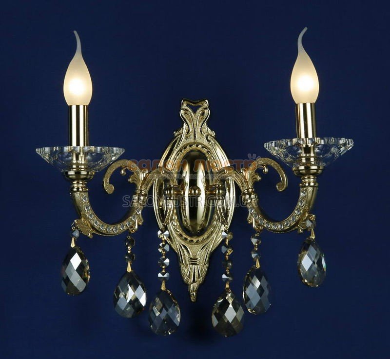 Світильник настінний (бра) кришталевий виробництва компанії WUNDERLICHT (Німеччина); Матеріали: метал, кришталь; Колір: золото, прозорий; Висота: 34 см; Ширина: 31 см; Тип патрона: Е14; Кількість ламп: 2; Потужність: 60 W.