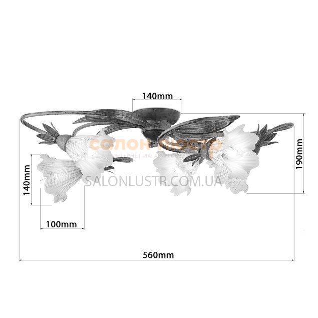 Висота: 165 см; діаметр: 68 см; лампи: 3 х Е-14 х 60 Вт. - УКРАЇНА