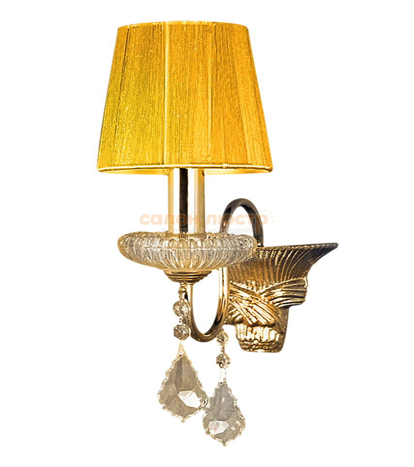 Світильник настінний (бра) виробництва компанії WUNDERLICHT (Німеччина); Матеріали: метал, текстиль, кришталь; Колір: золото, прозорий; Висота: 38 см; Ширина: 12 см; Тип патрона: Е14; Кількість ламп: 1; Потужність: 60 W.