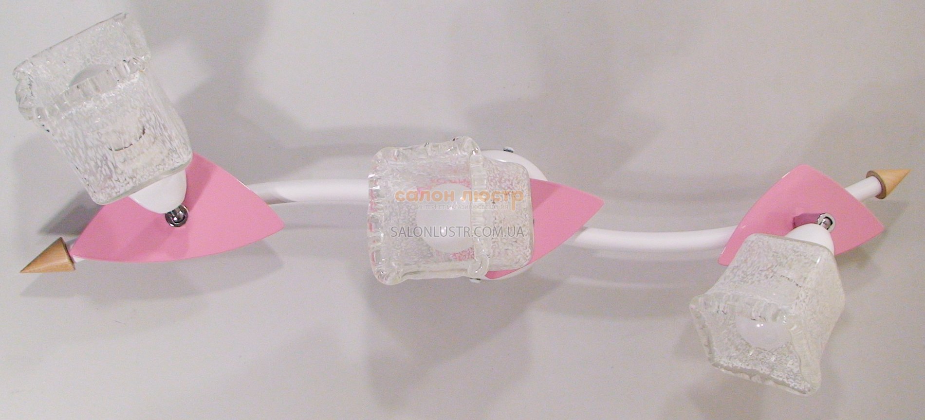 - УКРАЇНАВисота: 20 см; довжина: 71 см; лампи: 3 х Е-14 х 60 Вт. Плафони у світильнику обертаються на шарнірі.