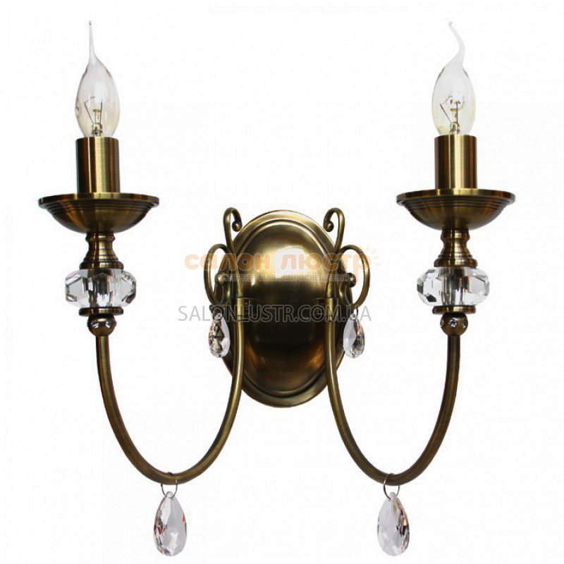 Світильник настінний(бра) серії Opera виробництва компанії " Wunderlicht" (Німеччина); Матеріал: метал / кришталь; Колір: бронза / прозорий; Висота: 26 см; ширина: 34 см; лампи: 2 х E14 х 60 Вт.
