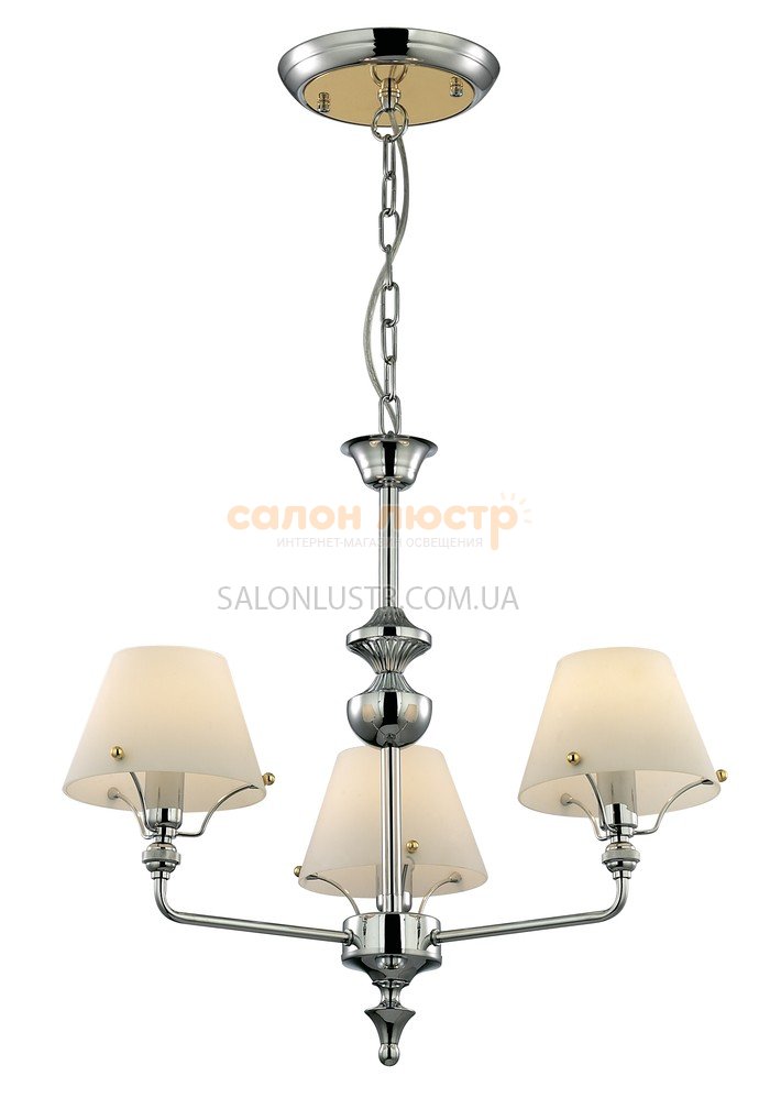 Люстра класична виробництва компанії "BLITZ" (Німеччина); Матеріал: метал / стекло; Колір: хром / золото / білий; Висота: 80 см; ширина: 58 см; лампи: 3 х Е14 х 40 Вт.