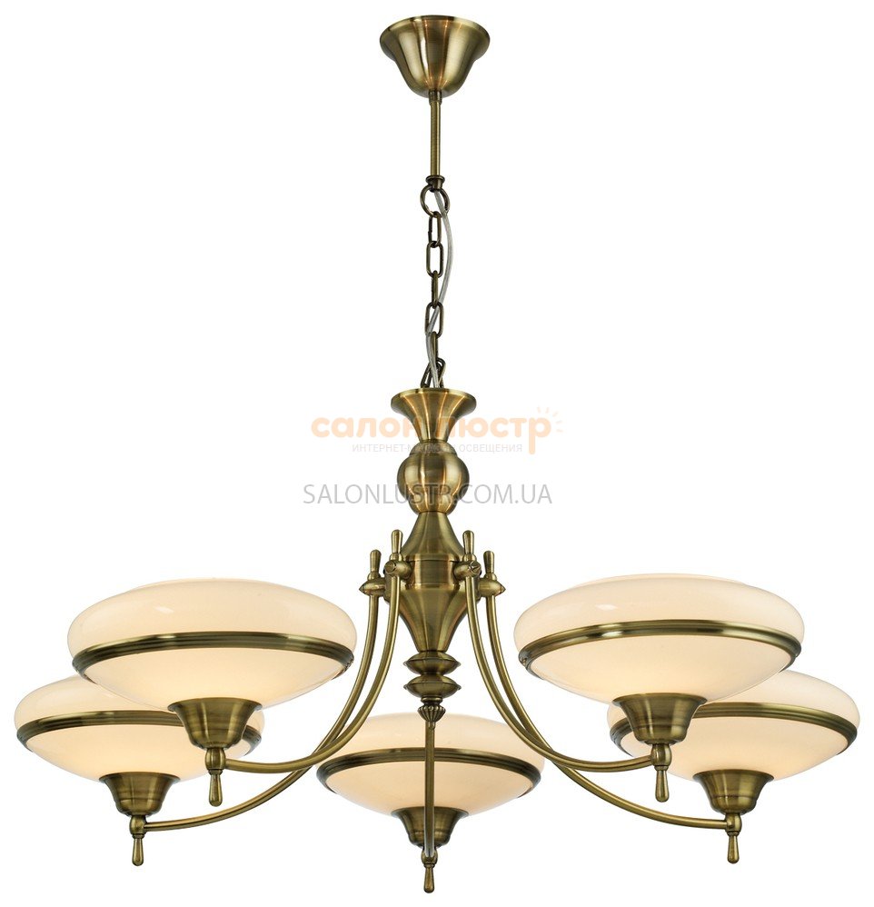 Люстра класична виробництва компанії "BLITZ" (Німеччина); Матеріал: метал / стекло; Колір: бронза / білий; Висота: 50-85 см; ширина: 84 см; лампи: 5 х Е27 х 40 Вт.