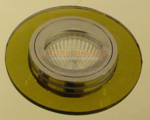 Крапковий світильник не поворотний виробництва компанії DELUX; Матеріал: метал (цинковий сплав,лиття); Колір: бурштин; Висота: 3 см; діаметр: 9,5 см; лампи: 1галогенна лампа MR16,цоколь G5,3; напруга: 12В/230В; потужність: 50Вт,35Вт,20Вт. Для лампочок 12В потрібний трансформатор або кілька трансформаторів, потужністю не менше сумарної потужності всіх лампочок. Також можливо використовувати енергозберігаючі лампочки EMR 16 9Вт або 11Вт приблизно рівної потужності 40Вт або 60Вт лампи розжарювання.