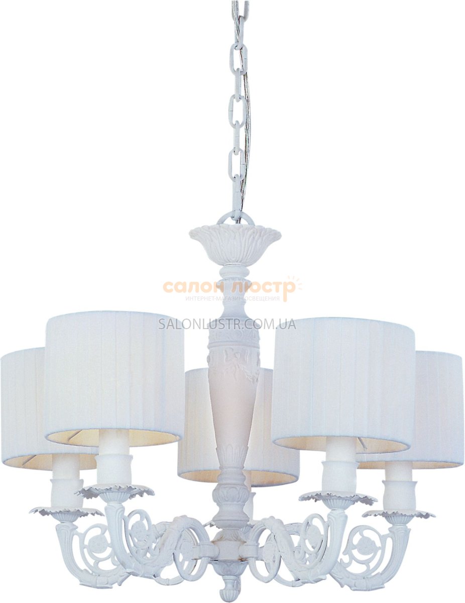 Люстра класична виробництва компанії WUNDERLICHT (Німеччина); Матеріали: метал, текстиль; Колір: білий, білий; Висота: 56-80 см; Ширина: 55 см; Тип патрона: Е14; Кількість ламп: 5; Потужність: 60 W.