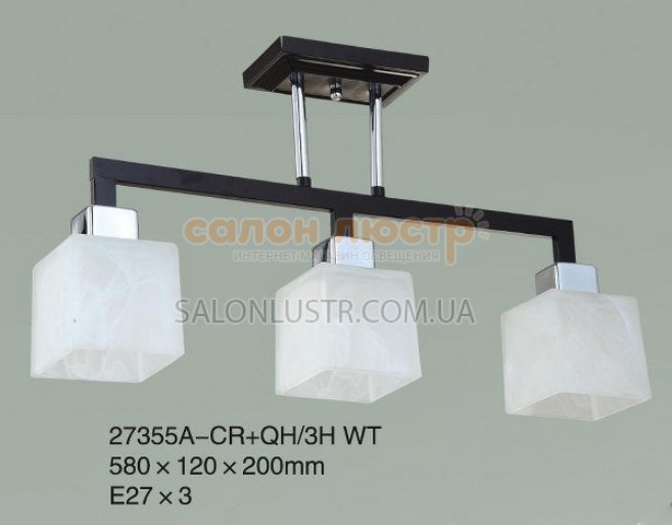 Люстра пристільна виробництва компанії TINKO; Матеріал: метал, скло; Колір підстави: хром+чорний; Плафон: стекло; Колір: білий матовий з мармуровим малюнком; Висота: 20 см; довжина: 58 см; лампи: 3 х Е27 х 60 Вт.