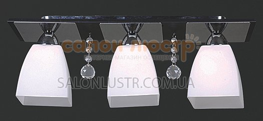 Люстра пристільна виробництва компанії TINKO; Матеріал: метал, дерево, скло; Колір підстави: хром+чорний; Колір плафона: білий; Декоративний елемент: прозорий кришталь; Висота: 21 см; довжина: 51 см; ширина: 13 см; лампи: 3 х Е27 х 60 Вт.