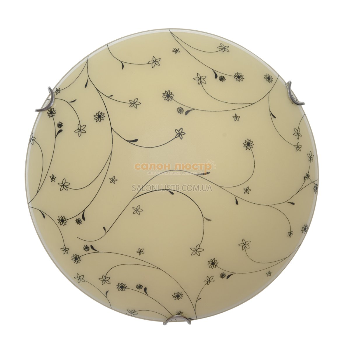 Світильник стельовий настінний виробництва компанії Декору (Україна) Матеріал: метал/стекло; Колір: бежевий з малюнком; Висота: 8 см; діаметр: 40 см; лампи: 3 х E27х 60 Вт.